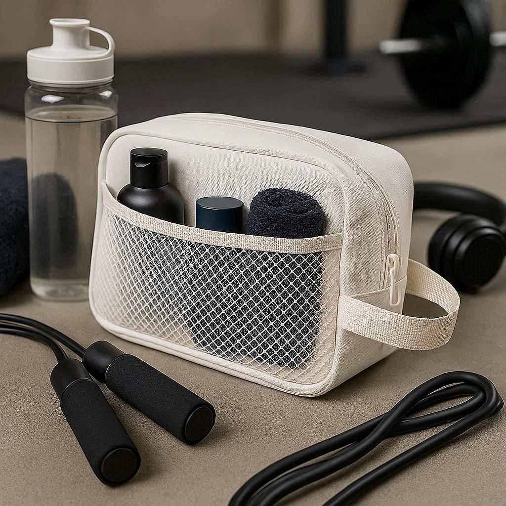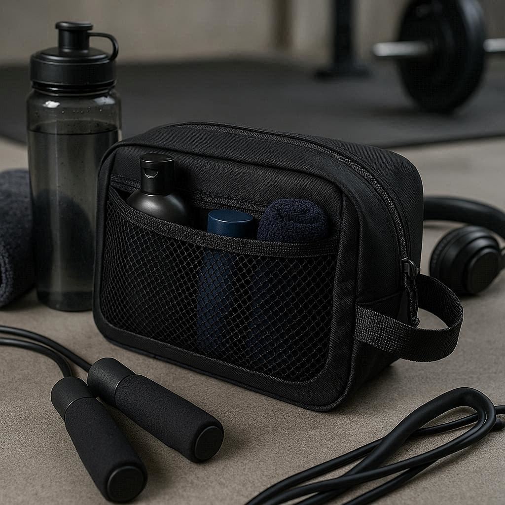 Built for the fitness enthusiast, this bag is made from quick-dry, antimicrobial fabric that prevents odor. It features a fully ventilated wet compartment for damp clothes or swimwear, separate from dry toiletry storage. Includes a carabiner clip for towels, a small pocket for gym locker keys, and a non-slip base for shower floors. Durable and functional for post-workout routines at the gym or on the road.